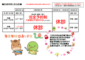 29日(月)は完全予約制となります